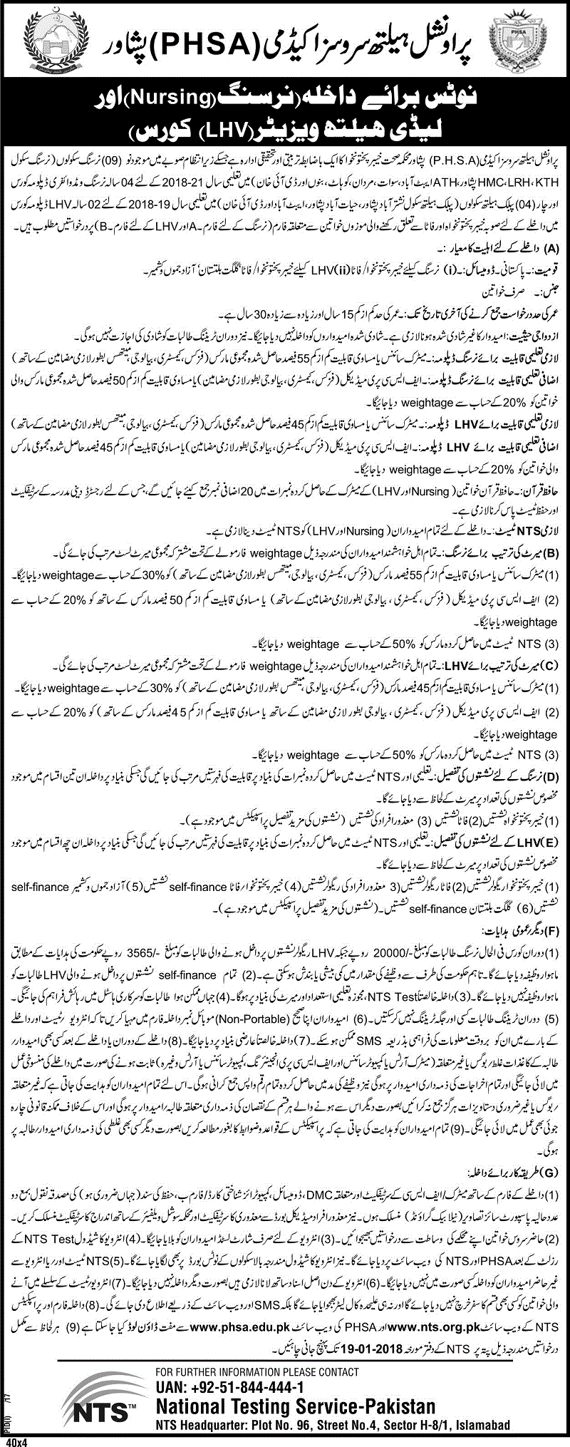 Provincial Health Services Academy Admission For Nursing Diploma Midwifery Lhv 2018 Bk Jobs