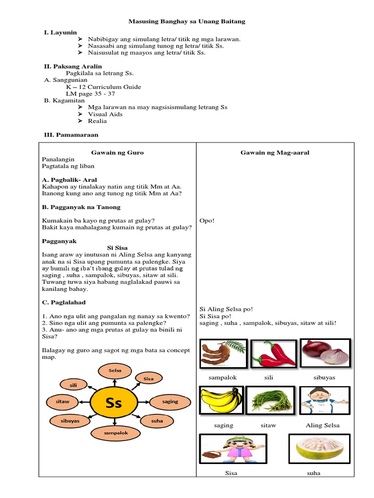 Masusing Banghay Sa Unang Baitang I Layunin