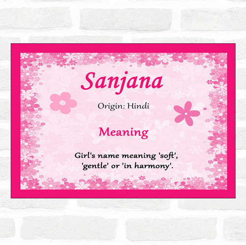 Sanjana Name Meaning Pink Certificate The Card Zoo
