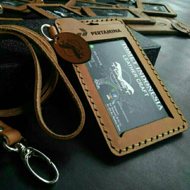 Casing Id Card Name Tag Kulit Asli Desain Custom Shopee Indonesia