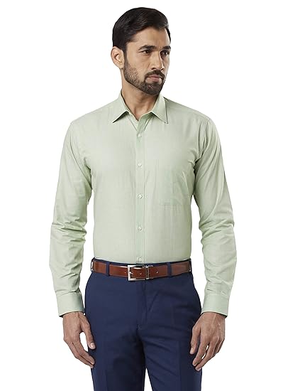 Buy Raymond Light Green Slim Fit Cotton Shirt At Amazon In