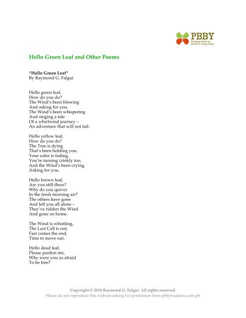 Hello Green Leaf And Other Poems