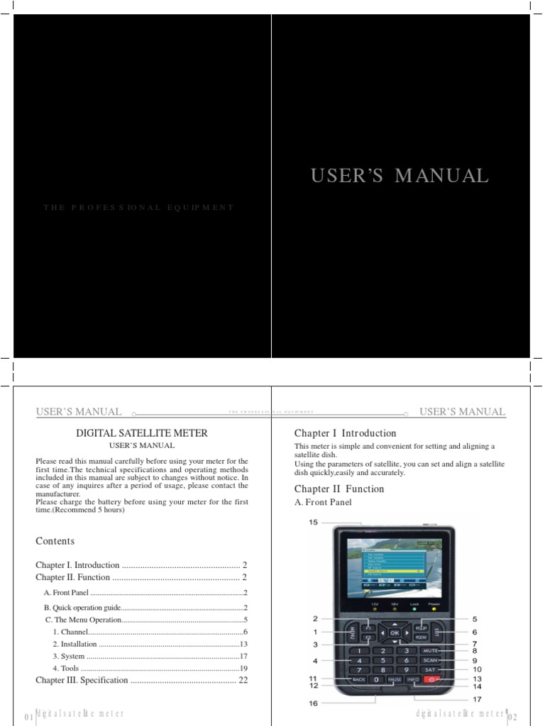 Satlink ws 6906 manual. Software update user manuals astra 28 e transponders list updated by lyngsat 26 06 2017 how to set up a satlink meter ws 6908 se astra 28 2e sattelite. How to set up a satlink hd modulator. User s manual 01 digital satellite meter 02 the professio nal equipment digiital satellite meter digital satellite meter user s manual please read this manual carefully before using your meter for the first time the technical specifications and operating methods included in this manual are subject to changes without notice. The satlink meter screens show that it already has a number of satellites listed in its internal list and that for each of these it assumes you are using a universal ku band lnb with two local oscillator frequencies 9750 and 10600 mhz.