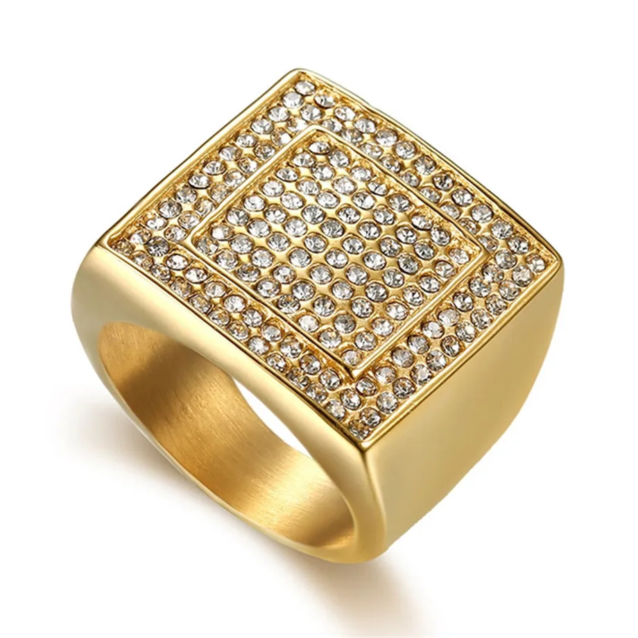 Hip Hop Men S Iced Out Cz Big Square Ring 316l Stainless Steel Gold Color Cool Large Party Male Rings Bling Jewlery Dropshipping Rings Aliexpress