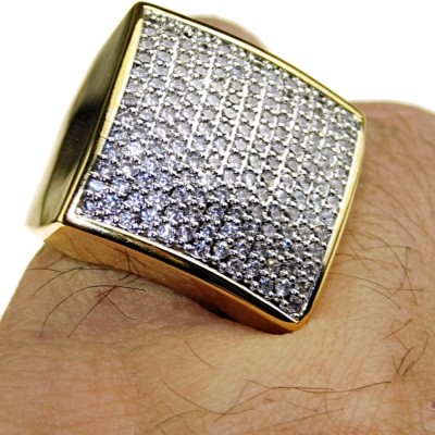 Hip Hop Square Diamond Mens Ring 2 3ct 14k Gold