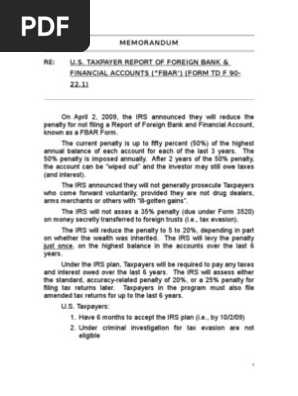 Fbar Form Tdf 90 22 1 Filing Summary Internal Revenue Service Securities Finance
